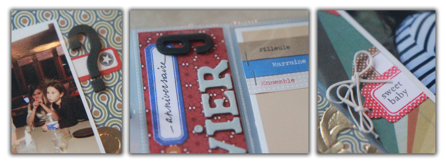 Cette semaine était riche en photos et j'ai fait 2 double-pages, mais je souhaitais que la pochette centrale soit moins large que les 2 autres pour bien montrer le lien entre elles. N'ayant à ma disposition ce type de pochettes A4, j'ai donc découpé l'une de mes pochettes (We're MK) pour obtenir 5 cases 10x15, 3 horizontales et 2 verticales, et refait des perforations. Ce n'est peut-être pas très clair, les photos de mes pages devraient être plus parlantes!